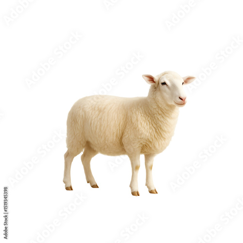 Isolated white sheep standing on a transparent Background.