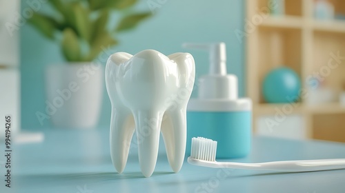 Isolated White Tooth Model on Blue Background - Dental Health Concept