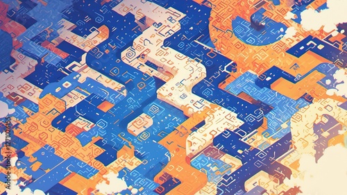 city, building, abstract, isometric, interconnected, sky, cloudy, tech, background, architecture, urban, design, modern, geometric, three-dimensional, structure, pattern, connection, network, perspective, art, digital, futuristic, innovation, technology, communication, complex, creative, construction, engineering, metropolis, landscape, aerial, view, block, shape, line, colourful, bright, fantasy, imagination, surreal, dreamlike, datum, system, circuit, grid, information