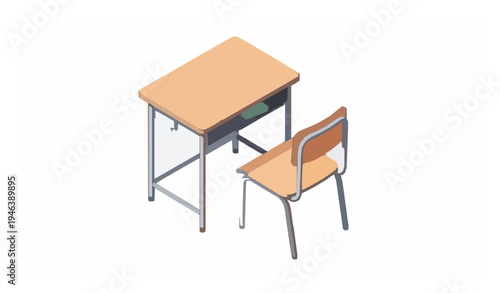 school, desk, chair, classroom, education, student, furniture, table, study, learning, academic, college, university, wooden, metal, isometric, perspective, illustration, vector, design, modern, minimal, equipment, isolated
