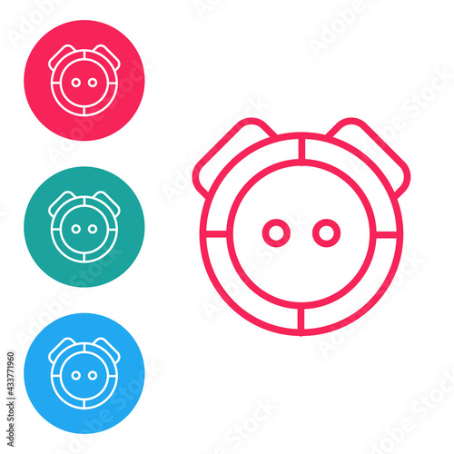 Isometric Robot vacuum cleaner icon isolated on orange background. Home smart appliance for automatic vacuuming, digital device for house cleaning. Silver square button. Vector