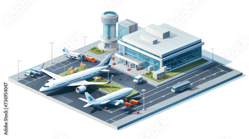 Isometric view airport on transparent background