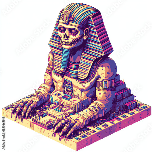 Isometric Zombie Sphinx Statue Design with Egyptian Headdress and Detail