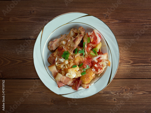 stew, adriatic, croatia, slovene, italy, mediterranean, sauerkraut, turnip, potato, bacon, spare ribs, american
