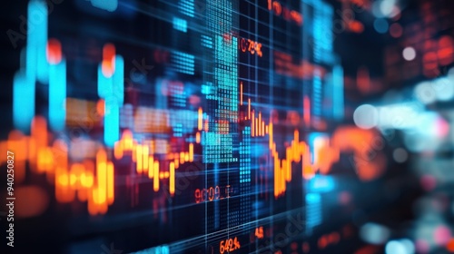 It shows an image of investment in the stock market with detailed analysis of data and stock growth graphs.