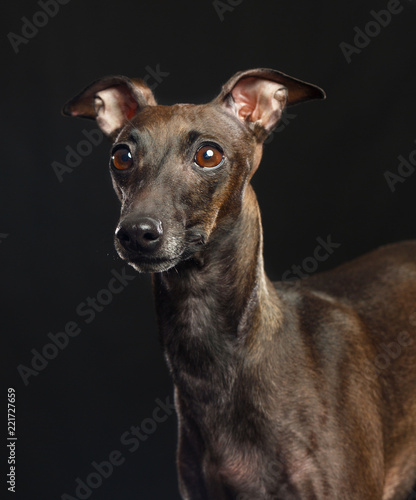 Italian greyhound Dog Isolated on Black Background in studio