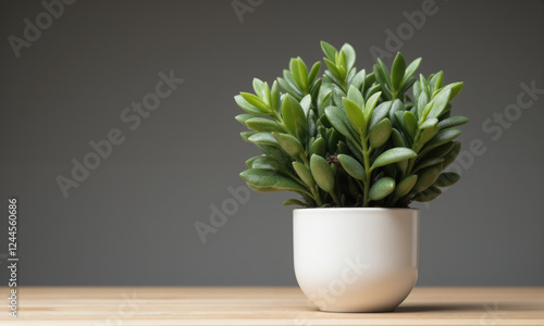 Jade Plant (Crassula ovata) Succulent with thick, fleshy green leaves and small pink or white flowers. Jade plants are typically