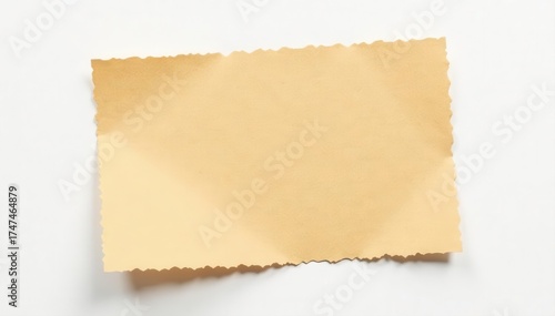 Jagged, light brown cardboard piece against pure white backdrop , grunge, isolated