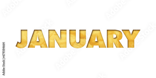 ‘January’ written in isolated paper cutout effect revealing gold crumpled paper background
