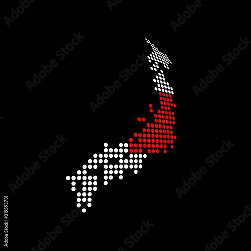 japan blank map vector . japan digital map template . silhouette . black map . Colorful map of japan . Japan national flag . sphere dots globe surface