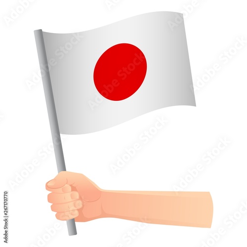 japan, japanese, flag, patriotic, country, symbol, waving, celebration, design, icon, pole, flag pole, holding, small, isolated, hand, vector, illustration, national, patriotism, concept, freedom, signs, nation, independence, arm
