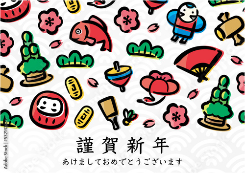 Japanese New Year Illustration for banners, backgrounds, New Year's cards, and various promotions.(A-size horizontal,Japanese version)
