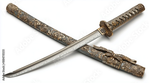 Japanese samurai katana sword with intricate designs and detailing from a traditional craft