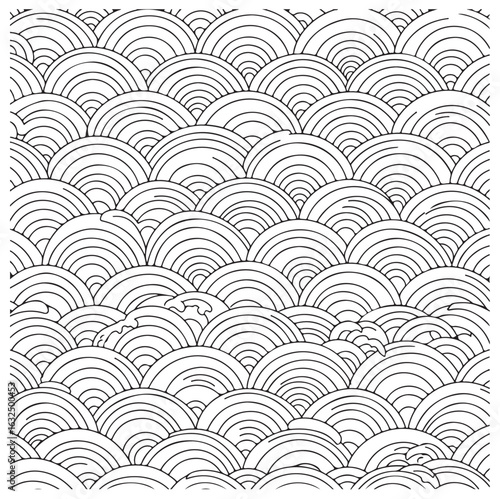 Japanese Wave Pattern Vector - Black on White. Ai generator