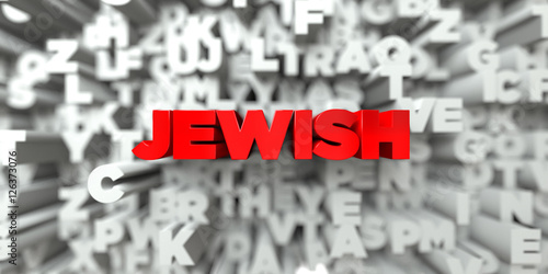 JEWISH - Red text on typography background - 3D rendered royalty free stock image. This image can be used for an online website banner ad or a print postcard.
