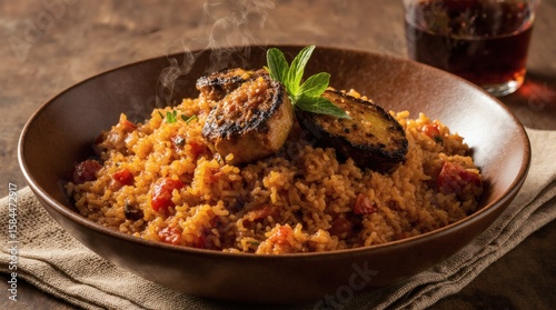 Jollof Rice West African Spiced Tomato Rice with Grilled Chicken