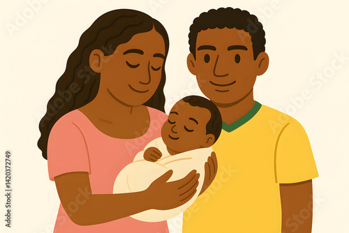 family, couple, brazilian, mother, father, baby, illustration, love, care, demography, happiness, hookup, maternity, fatherhood, childhood, affection, development, culture, supportive, growth, commonwealth, styled, art