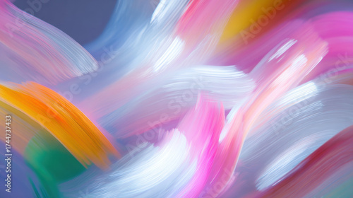 Joyful and creative abstract background with vibrant, colorful brush strokes. An artistic paint on canvas work showing dynamic motion with soft and expressive texture