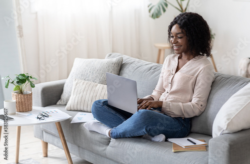 woman, computer, home, remote, work, freelance, online, cyberspace, technology, leisure, lifestyle, networking, relax, rest, sitting, sofa, studying, african american, success, typing, wi-fi, window, wireless, comfort, indoor, happy, office, working, laptop, afro, adult, beautiful, browsing, casual attire, cheerful, communication, copy space, couch, device, female, freelancer, contraption, young, curly, black, pretty, lady