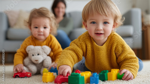 children, playing, living, room, toy, family, children, indoor, fun, colourful, joyful, bonding, sibling, creativity, playtime, development, laughter, home, cosy, happy, toddler, parental, interaction, imaginative, building, block, carpet, safety, comfortable, togetherness, sharing, childhood, growth, smiling, nurturing, exploration, learning, curious, adventure, young, heartwarming, connection, entertainment, indoor, parenting, activity