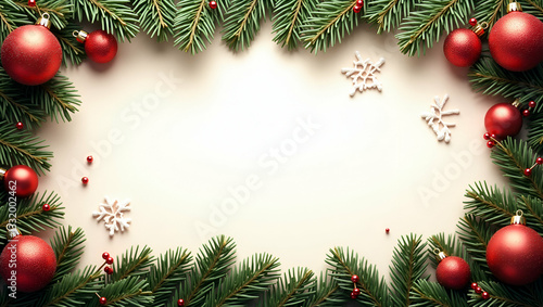 Joyful Christmas Border Frame with Ornaments: Create Festive Holiday Greetings with a Beautiful Scene and Ample Copy Space for Your Messages