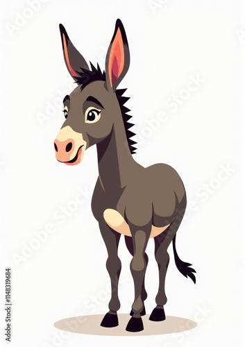 Joyful Donkey in Farmyard, Wildlife Illustration on White Background