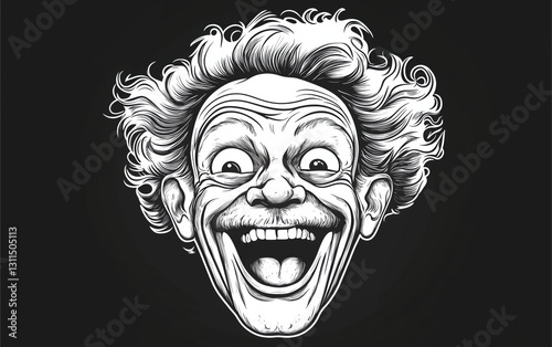 Joyful Elderly Man Laughing, Vintage Scratch Board Style