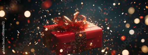 red, gift, box, exploding, confetti, vibrant, colours, glowing, sparkle, dynamic, trail, dark, background, sharp, contrast, motion, captured, festive, energy, celebration, scene, joyful, explosion, holiday, theme, magical, display, shimmering, particle, energetic, surprise, element, high-coloured, detail, celebratory, mood, visual, lighting, generative, ai, christmas, tree, decoration, christmas, candle, light, ornament