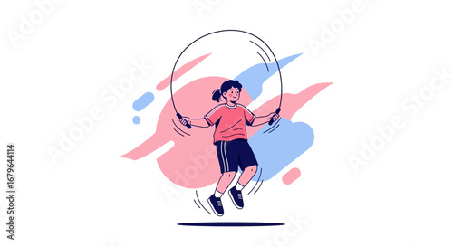 Joyful Kid Jumping Rope in Stylized Composition, Dynamic and Energetic Activity