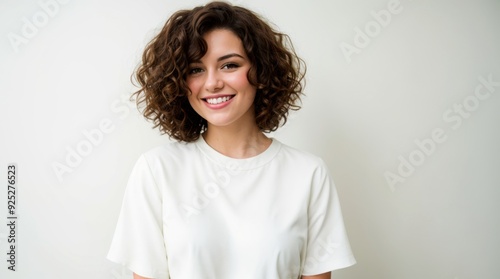 cheerful, young, woman, bouncy, curl, smiling, white, background, portraiture, happy, happiness, joyful, portrait, female, model, beautiful, beauty, cute, studio, caucasian, gorgeous, attractive, lifestyle, energetic, fun, playful, fashion, style, emotion, expression, lovely, positive