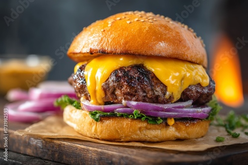 cheese, classic, burger, ketchup, side dish, pickle, snack, closeup, meat, tasty, junk food, fast food, bar-b-q, cheddar, bun, bistro, meal, epicure, sauce, main course, comfort food, brioche, fried, lunch, appetising, beef, eatery, mustard, savoury, grilled, cheeseburger, greasy, take-out, calorie, delicious, photogenic, saturated