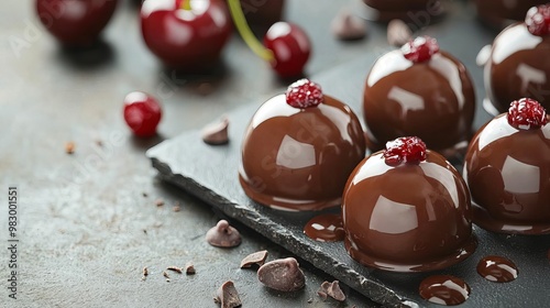 Juicy chocolate-covered cherries, rich and decadent, perfect for a sweet indulgence