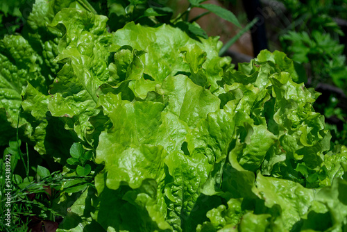 Juicy green lettuce leaves in the garden on a sunny day