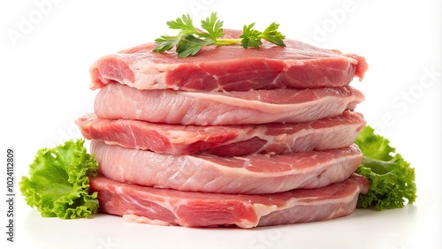 Juicy pork stack isolated on white background, Roasted pork stack symmetrical