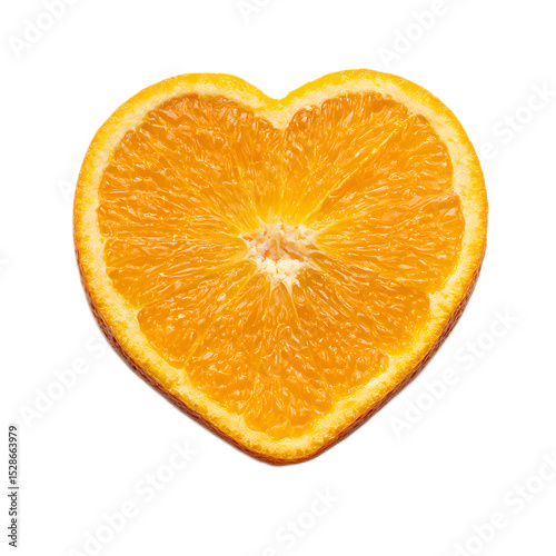 Juicy vibrant orange slice cut in the form of a natural chubby heart shape highlighting the sweet and nutritious qualities of this citrus fruit