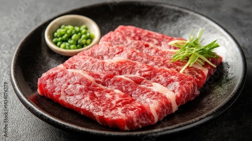 Juicy wagyu steak with side of wasabi and soybased sauce
