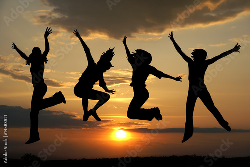 jumping, girl, teenage, happy, happiness, joy, game, jump, play, teenage, outline, silhouette, sunset, summer, sundown, fun, pastime