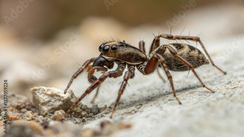 spider, jumping, arachnid, insect, wildlife, nature, macro, closeup, arthropod, animal, small, brown, black, leg, eye, hairy, fauna, creature, outdoors, wild, invertebrate, predator, hunter, tiny, detailed, sharpened, natural, environment, ground, surface, textured, zoology, bug, critter, segmented, animal kingdom, arthropoda