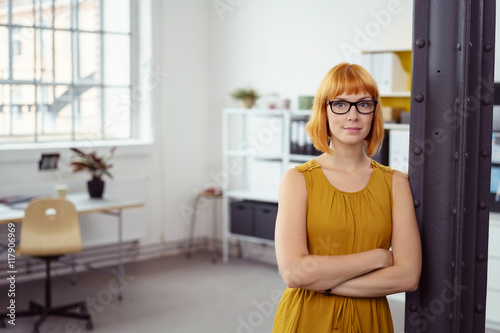 office, business, woman, creative, occupation, businesswoman, stylist, art, stylish, fashion, fashionable, fashion design, individual, labor, work, blog, marketing, marketing, communication, department, standing, business, workplace, loft, window, bright, modern, job, business, business, white, redheaded, yellow, caucasian, attractive, smile, spectacle, 20s, 30s