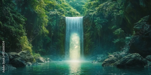 wilderness, waterfall, water, vibrant, tropical, calmness, tranquil, sunlight, stream, shimmering, serene, secluded, rock, portal, peaceful, oasis, nature, mystical, mist, lush, landscape, jungle, inviting, hidden, greenery, gateway, flow, flora, fauna, fantasy, exploration, exotic, aethereal, escape, environment, enchanting, dreamlike, cliff, cascade, adventure