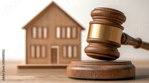 Justice and Homeownership A Symbolic Close-Up of a Judges Gavel and Vintage House Model Under Warm Lighting - Minimalistic Law and Real Estate Concept