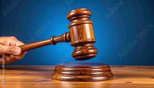 gavel, justice, law, court, judge, verdict, authority, decision, legal, wooden, hammer, block, sound, striking, hand, judgement, auction, regulation, power, closeup, business, finance, crime, punishment, desk, table, lawyer, jurisprudence, legislation, resolution, brown, blue background, wood grain, equality, ethic, responsibility, professional, official, ceremony, rule, meeting, democracy, courtroom, object, symbol, macro, indoor, studio, attracted