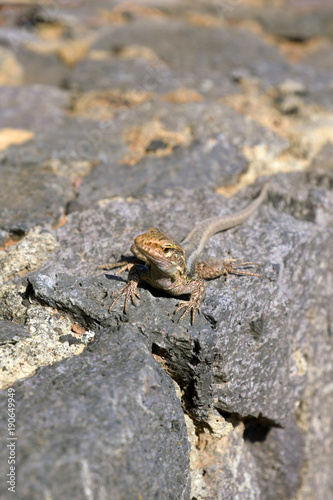 female, reptile, bask, sunshine, look, wall, lava, la palma, reptile, stone