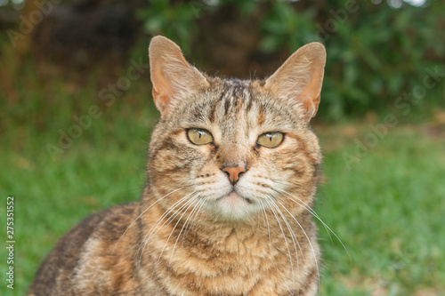 cat, animal, pet, felino, pretty, cat, domestic, fur, green, portrait, tabby, mammal, game, grass, eye, face, nature, young, whisker, grey, hair