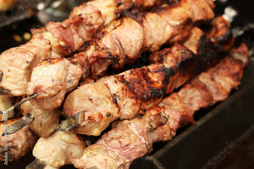 meat, grill, pork meat, bar-b-q, grilled, store, food, roasted, shashlik, bar-b-q, bar-b-q, beef, brown, charcoal, closeup, coal, cook, cooked, cooking, delicious, dinner, fire, flames, frying, hot, kebob, lunch, meal, outdoors, party, picnic, eatery, roast, shish, shop, skewer, skewer, steak, supermarket, tasty