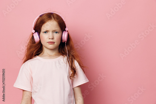 Kid cute music person girl child beauty childhood face headphone caucasian