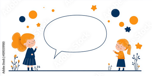 Kid flat illustration with empty text bubble above head and light bulb idea