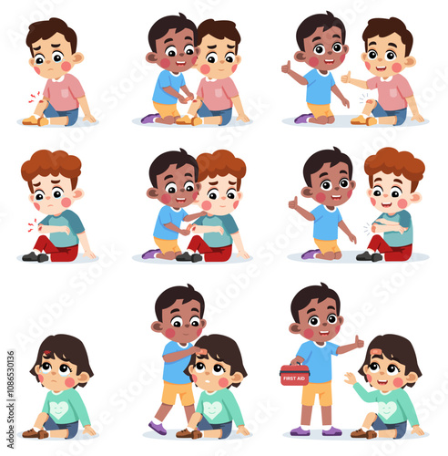 children, in plaster, wound, knee, leg, injury, children, medicals, accident, aid, bandage, treatment, health, help, injured, band, scratch, bruise, medicine, recovery, patch, boy, girl, putting, friends, elbow, forehead, head