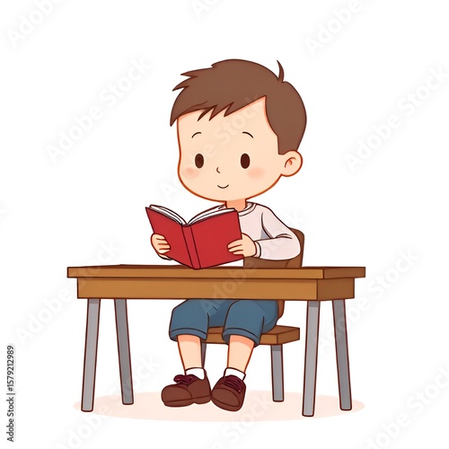 children, cartoon, boy, school, book, education, children, illustration, vector, people, student, reading, desk, learning, computer, table, read, studying, study, woman, person, childhood, smile, chair, little
