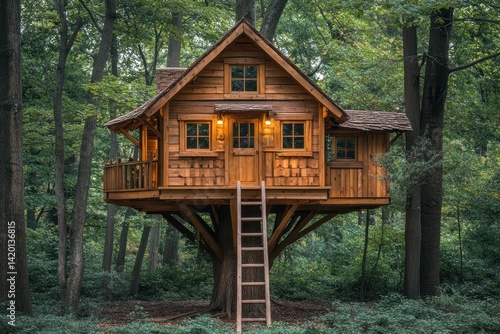 Kid-Friendly Treehouse with Wooden Ladder for Playtime